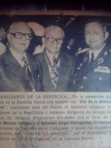 Presidente de la comisión de Defensa del Senado. Condecoración en la Armada. Noten la presencia de Rómulo Betancourt.