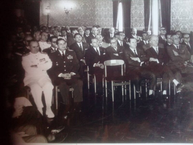 Reunión en el Salón de los Espejos con el Alto Mando Militar. En la primera fila Dr. Rafael Caldera y Don Jóvito Villalba,